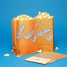 Mit den bunten „Stand Up“ Warmhaltetüten können Sie frisches Popcorn direkt aus der Maschine servieren. Die Tüten sind zweilagig und die Innenschicht ist fettabweisend.